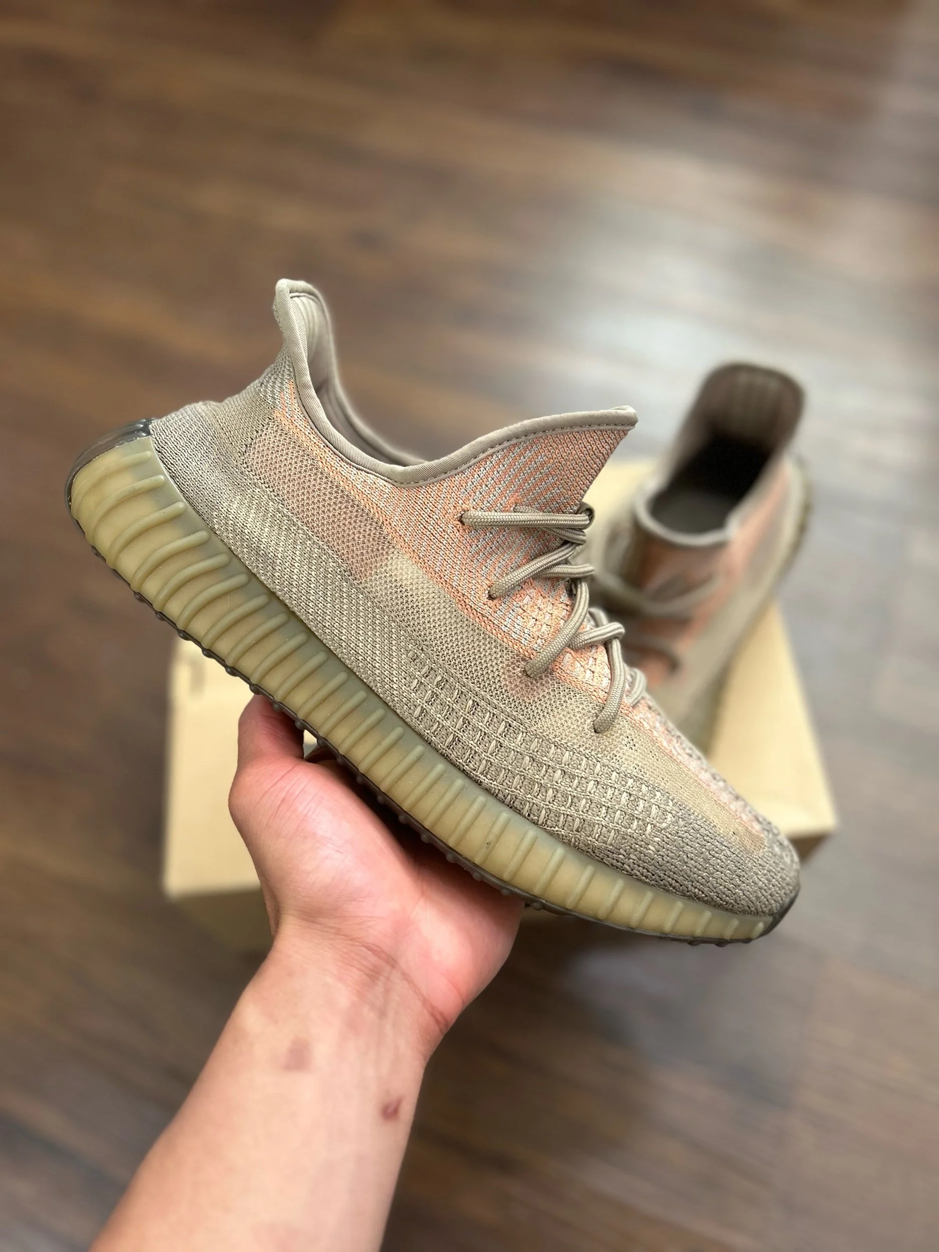 Image 1 of 6 Image 2 of 6 Image 3 of 6 Image 4 of 6 Image 5 of 6 Image 6 of 6 Yeezy 350 “Sand Taupe” $89.99 Size: 12 Men’s Condition: 8.5/10 in OG Box Purchase Added! Size: 12 Men’s Condition: 8.5/10 in OG Box