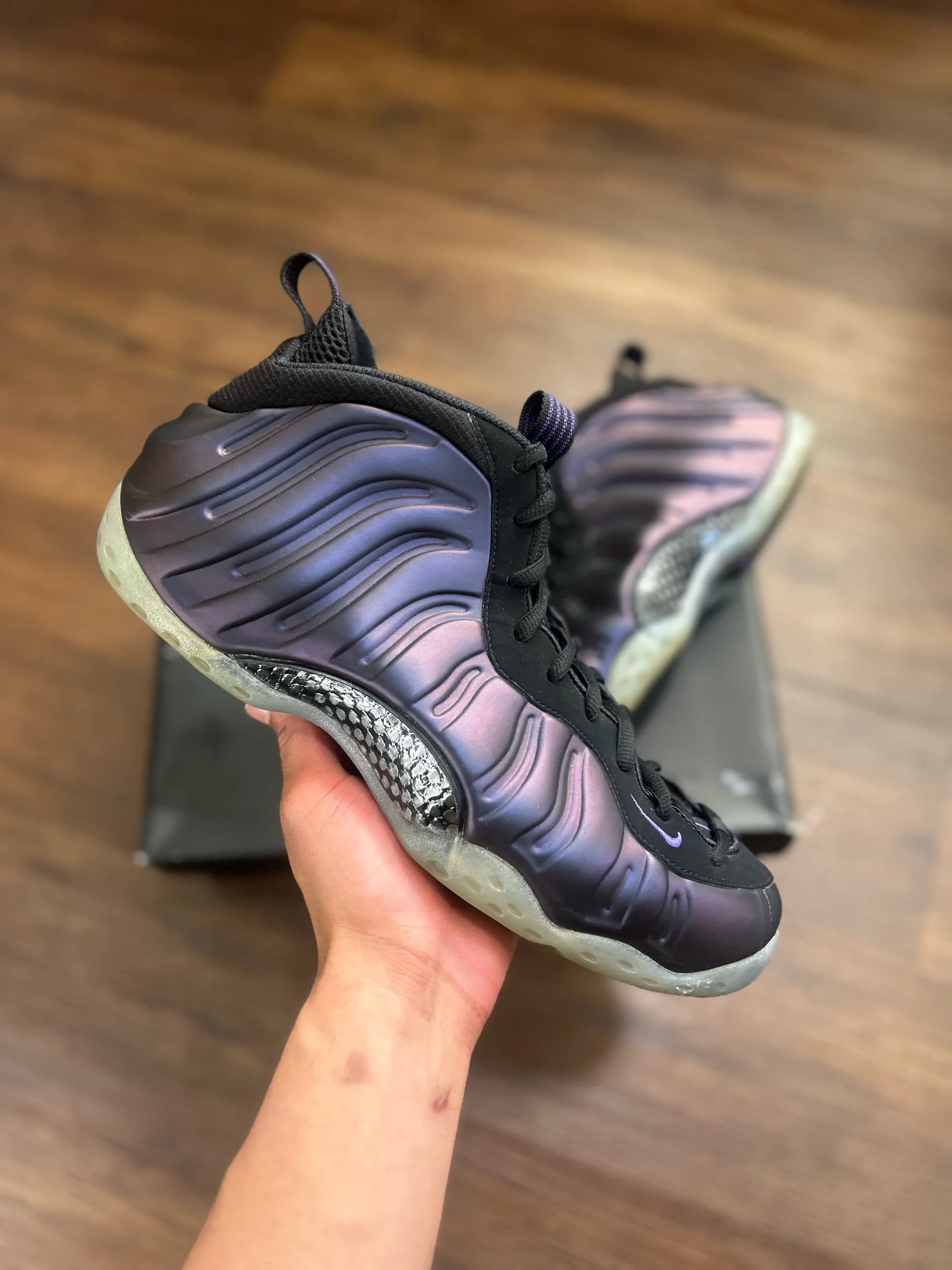 Image 1 of 6 Image 2 of 6 Image 3 of 6 Image 4 of 6 Image 5 of 6 Image 6 of 6 Nike Air Foamposite “Eggplant” (2024) $179.99 Size: 12 Men’s Condition: 9/10 in OG Box Purchase Added! Size: 12 Men’s Condition: 9/10 in OG Box