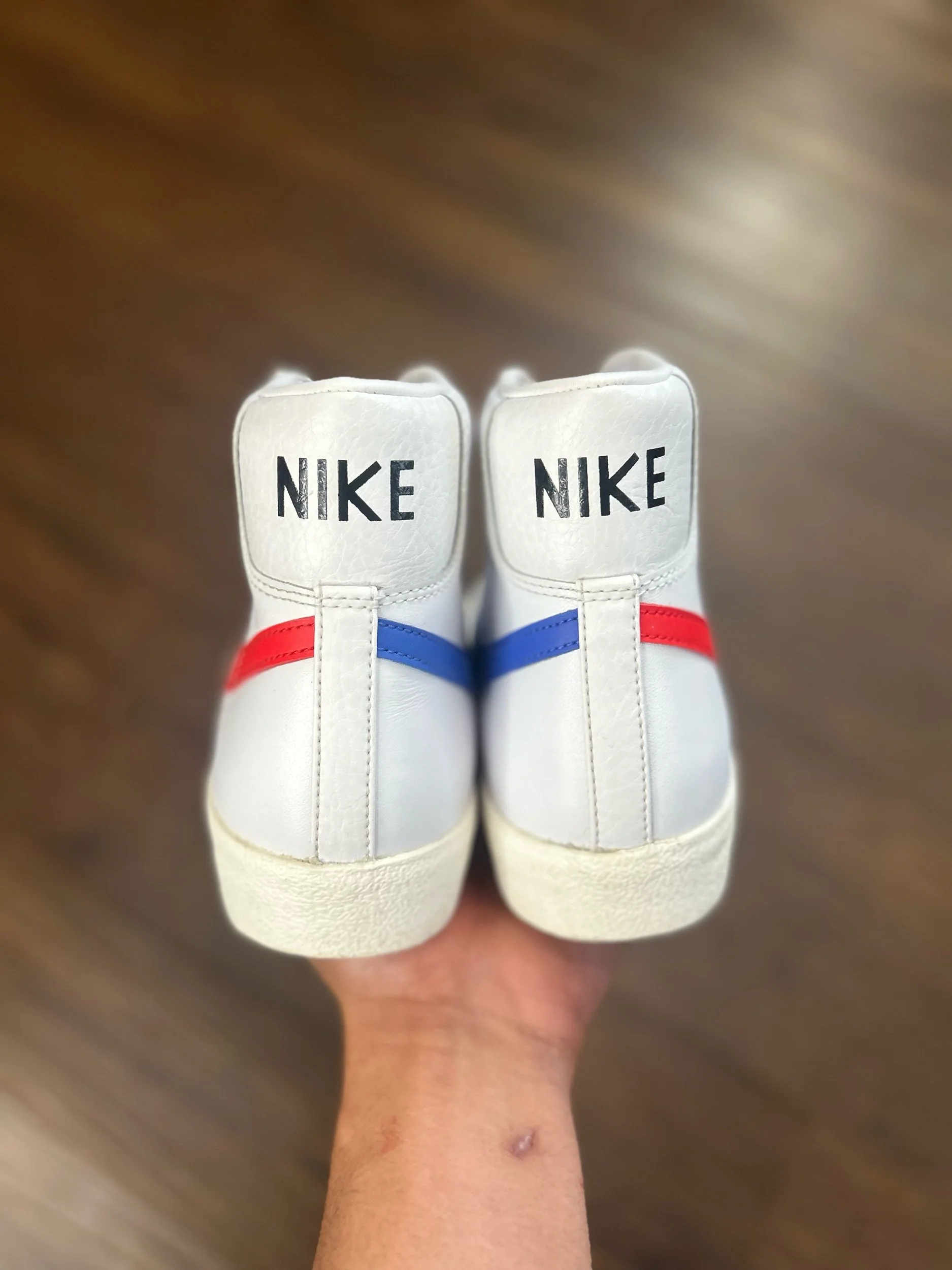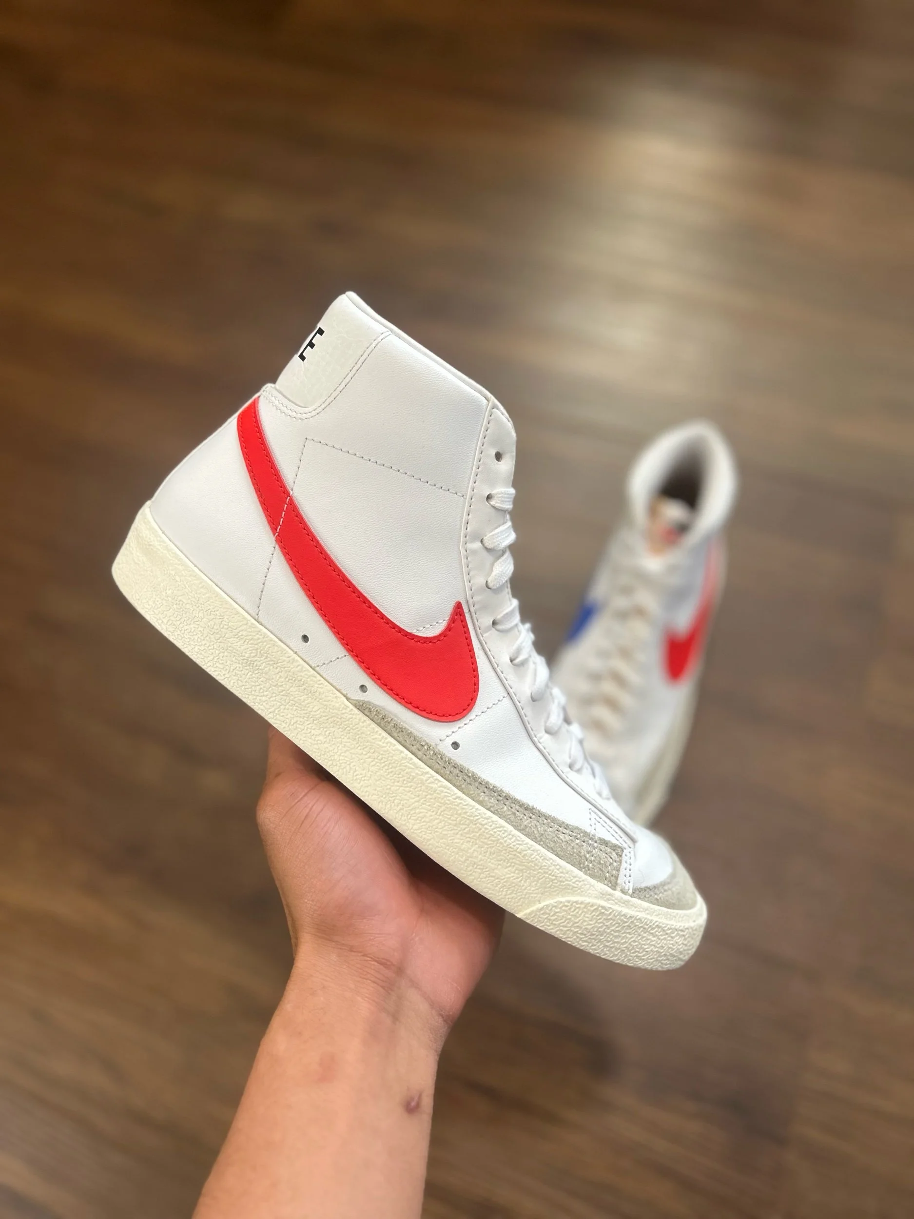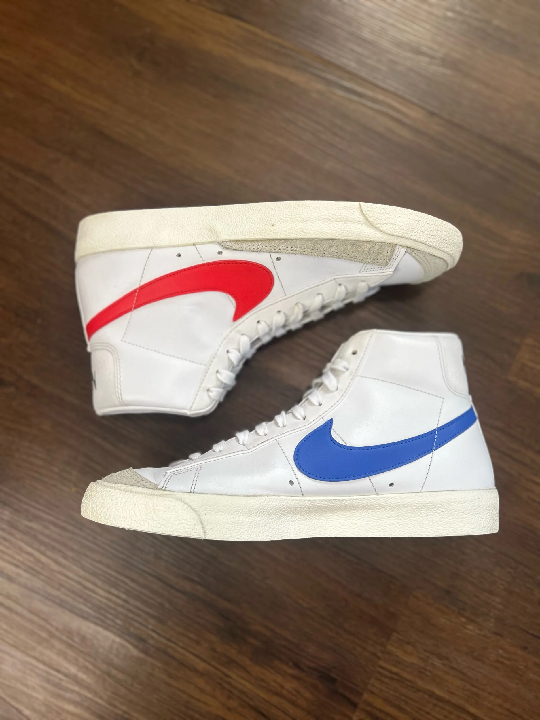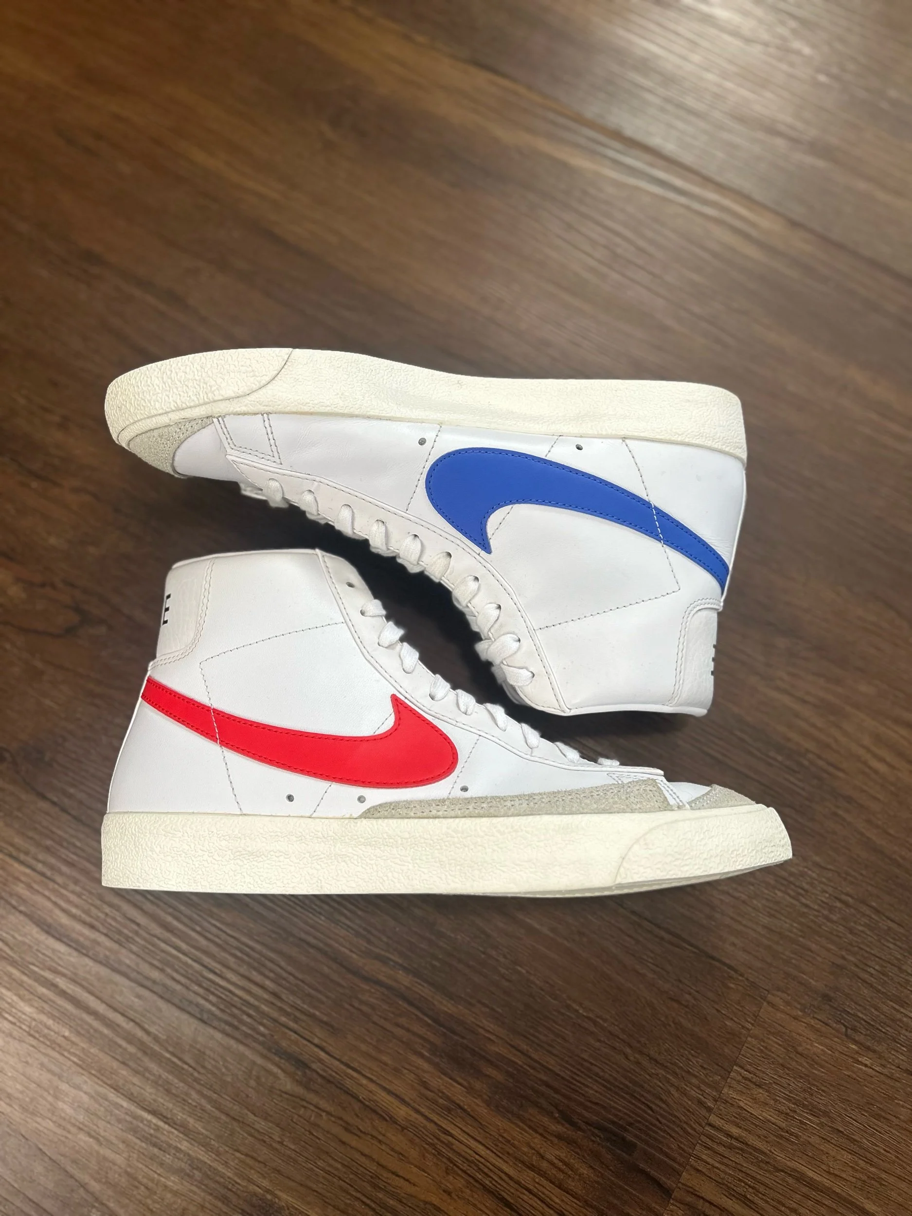 Image 1 of 6 Image 2 of 6 Image 3 of 6 Image 4 of 6 Image 5 of 6 Image 6 of 6 Nike Blazer Mid 77 “Vintage Mismatched” $14.99 Size: 9 Men’s Condition: 9/10 (no box) Purchase Added! Size: 9 Men’s Condition: 9/10 (no box)