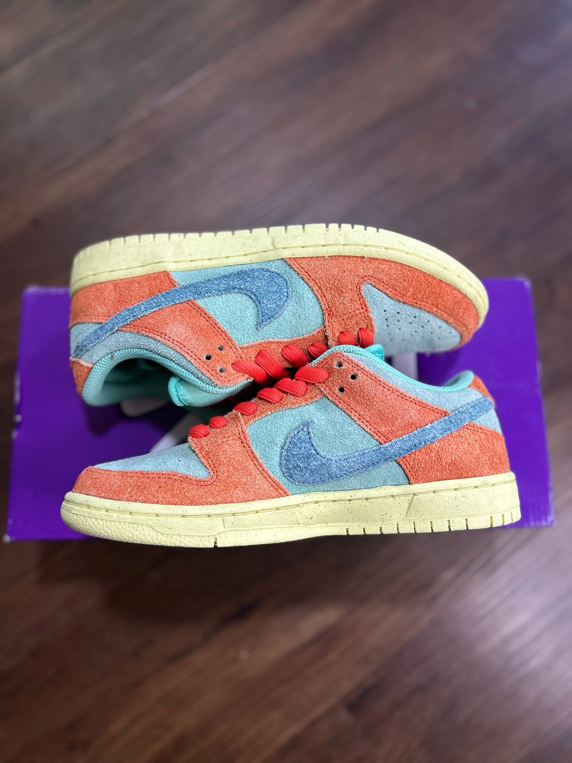 Image 1 of 6 Image 2 of 6 Image 3 of 6 Image 4 of 6 Image 5 of 6 Image 6 of 6 Nike SB Dunk Low “Orange Emerald Rise” $39.99 Size: 6M / 7.5W Condition: 9/10 in OG Box Purchase Added! Size: 6M / 7.5W Condition: 9/10 in OG Box