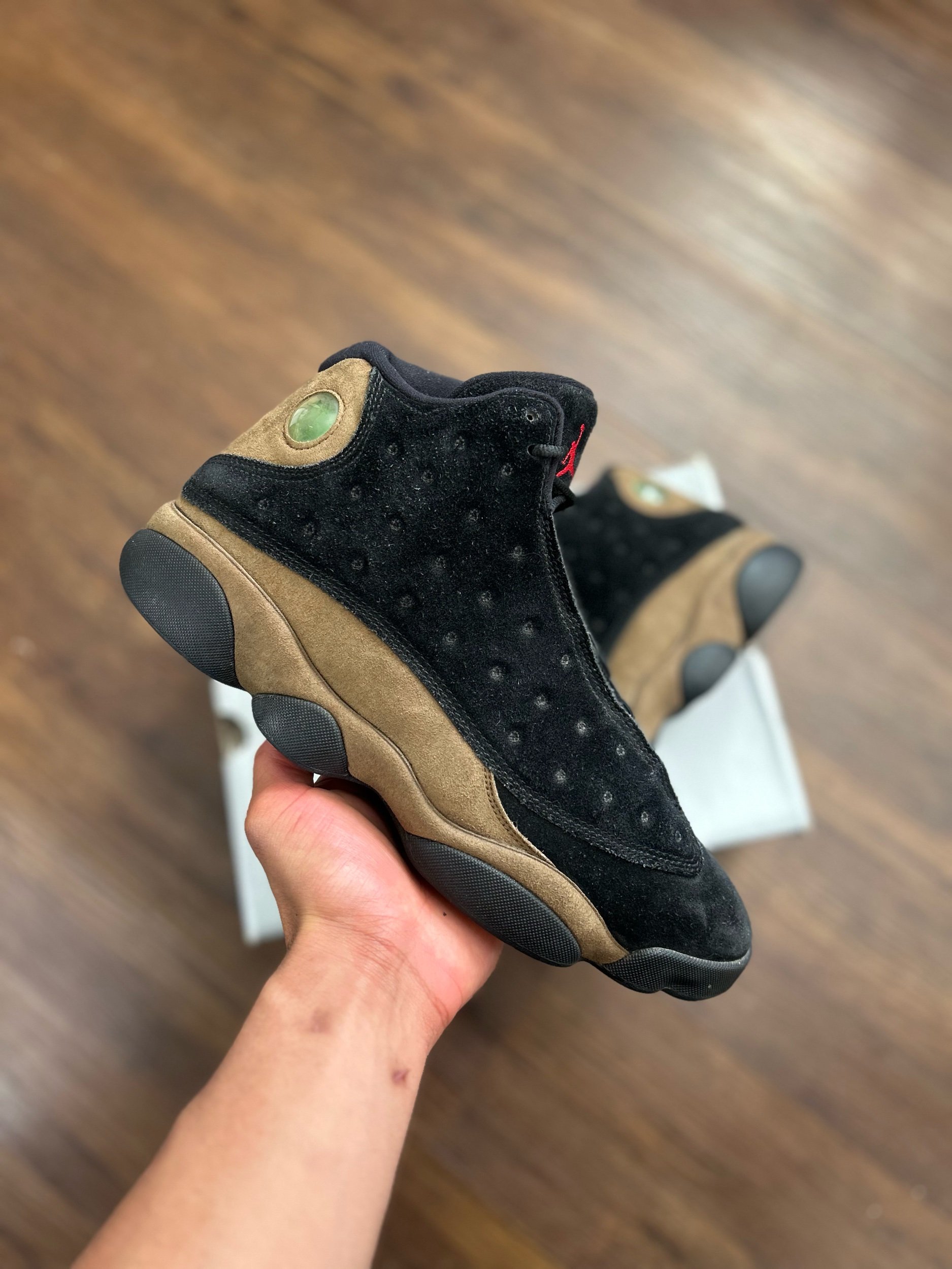 Image 1 of 6 Image 2 of 6 Image 3 of 6 Image 4 of 6 Image 5 of 6 Image 6 of 6 Jordan 13 “Olive” $59.99 Size: 12 Men’s Condition: 7.5/10 in replacement J13 box + replacement insoles Purchase Added! Size: 12 Men’s Condition: 7.5/10 in replacement J13 box + replacement insoles